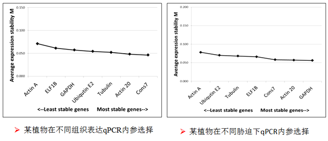 許多科研人員及公司,隨便選擇一種內(nèi)參,根本不考慮內(nèi)參的穩(wěn)定與否,就進(jìn)行qPCR分析研究,往往得出與實(shí)際相反的結(jié)論。本公司針對每個(gè)模式生物,準(zhǔn)備了至少5種候選內(nèi)參基因引物,針對每一個(gè)qPCR實(shí)驗(yàn),采用gNorm或Normfinder軟件篩選最為穩(wěn)定的內(nèi)參引物,從而實(shí)現(xiàn)qPCR數(shù)據(jù)的可靠性和準(zhǔn)確性。