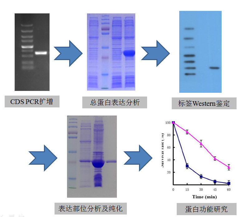 詳細實驗總結報告(包括CDS克隆、載體構建、測序、總蛋白分析、Western blot鑒定、表達部位分析、純化等)。