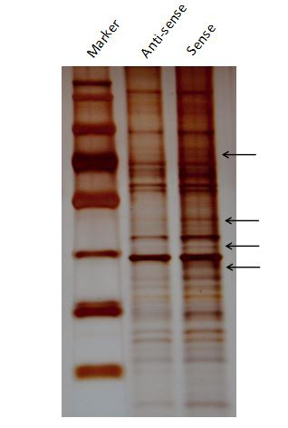 牛某lncRNA基因Sense和Anti-Sense下拉蛋白的PAGE銀染結果